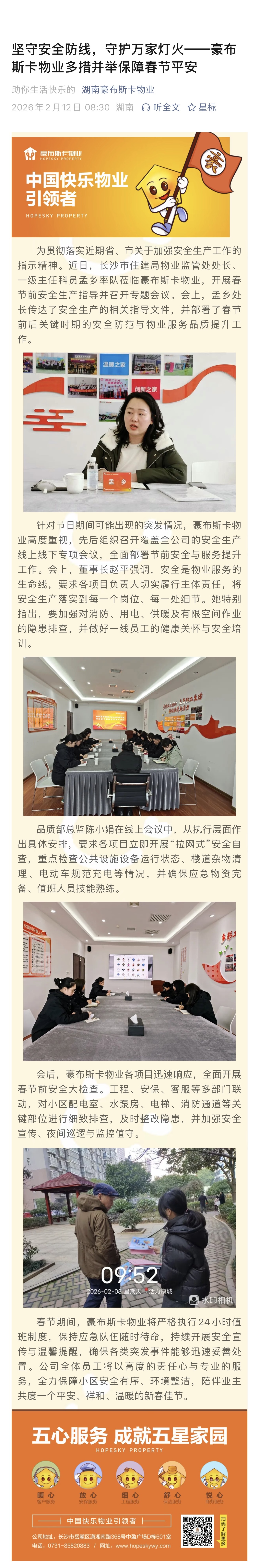 坚守安全防线,守护万家灯火——豪布斯卡物业多措并举保障春节平安